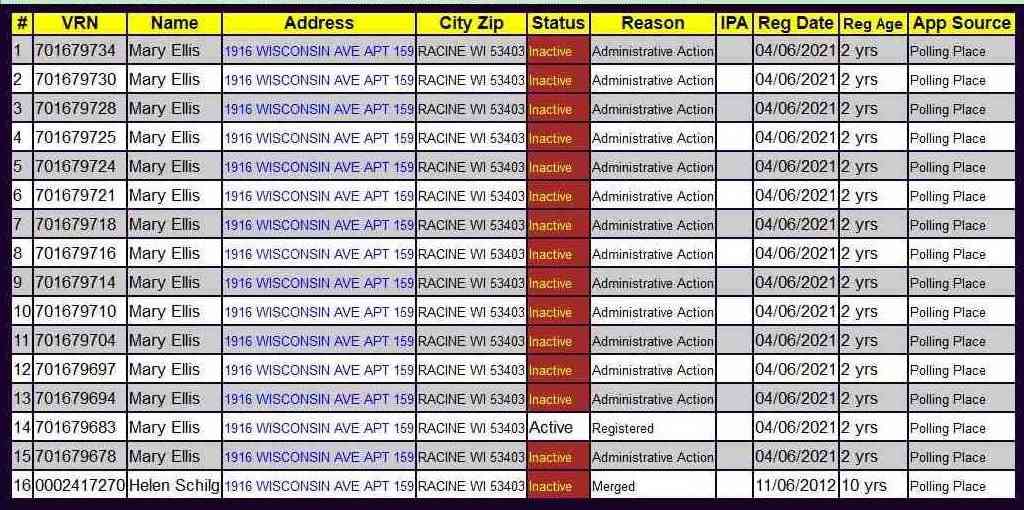 So then, how is it that the Wisconsin Voter Roll has so many voters with multiple VRNs for the same person at the same address?